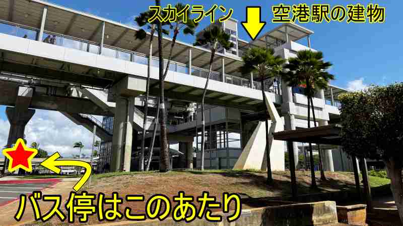 すぐに、ホノルルの鉄道「スカイライン」の空港駅の建物が見えます。