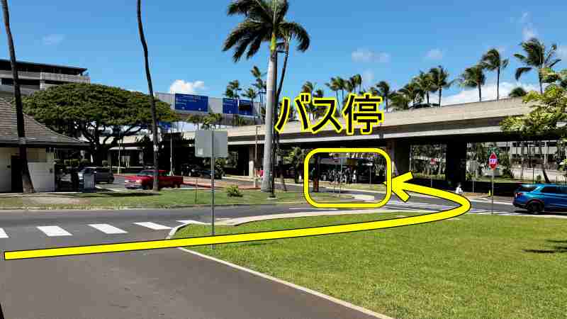 これまで空港に3か所あったバス停がすべてなくなり、空港ではここのバス停1つだけとなりました。またワイキキ行き20番の各停バスも廃止となったのが異なる点。