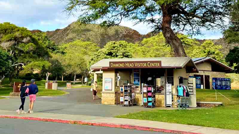 バス停を降りたら横のゆるい上り坂を上がっていきます。ダイヤモンドヘッド・ビジターセンターまで歩いて10~15分ほどです。