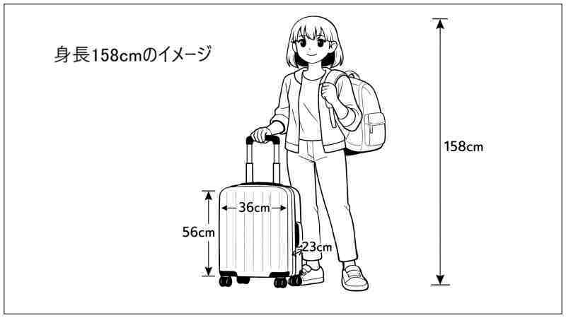 こちらは、身長158センチの人がスーツケースを持ったイメージ。