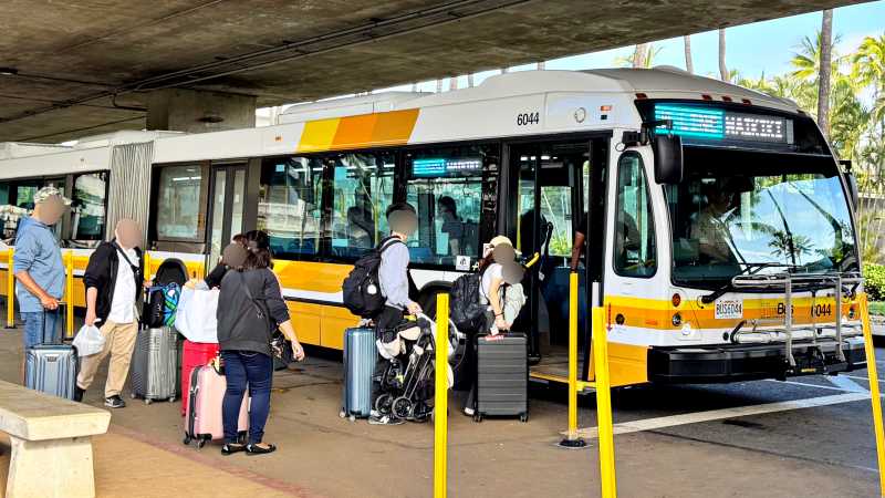 時期にもよりますが、ホノルル空港(ダニエル・K・イノウエ空港)からワイキキ行きへは、午前9時、10時、11時台では混雑していることが多いようです。