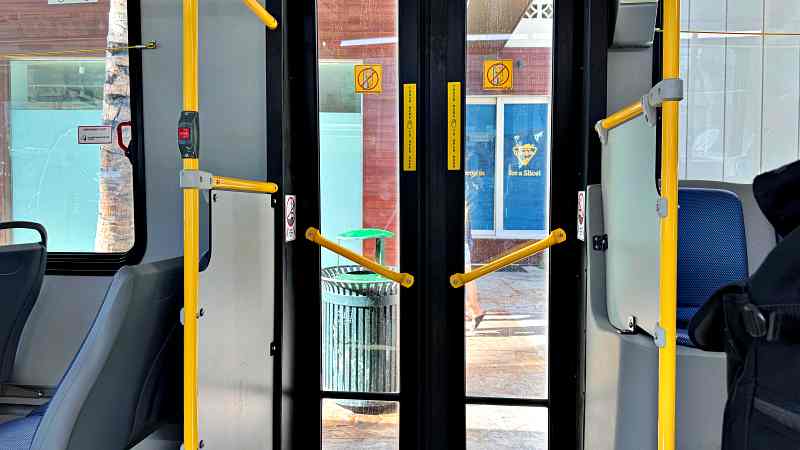 Wラインのバスは車内に階段がなくフラットでスーツケースを押しやすいです。また、バスの床とワイキキの歩道との高低差もそれほど大きくないので、スーツケースを降ろしやすいと思います。