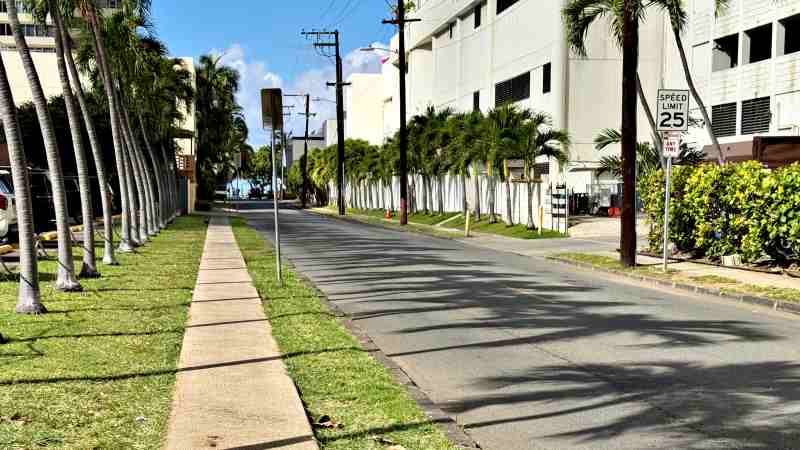 もし暗い時間に通る場合は、この道よりもう1本西のリリウオカラニ・アベニューのほうがにぎやかです。