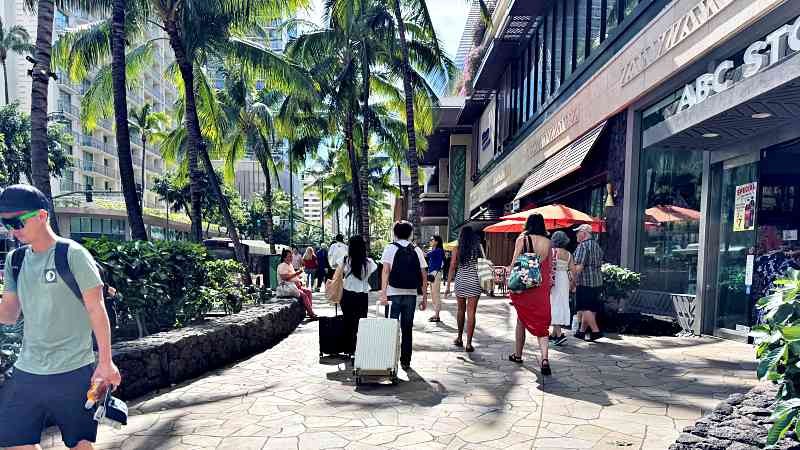 カラカウア通りからデュークスレーンを通ってもよいですが、インターナショナル・マーケットプレイスの中を通るとスーツケースが押しやすいと思います。
