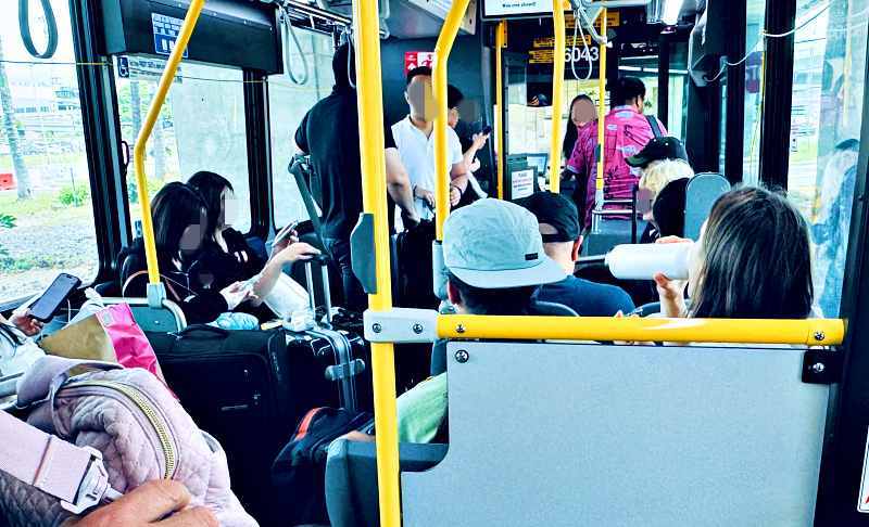 空港からバスに乗る場合、時間帯によってはとても混雑します。